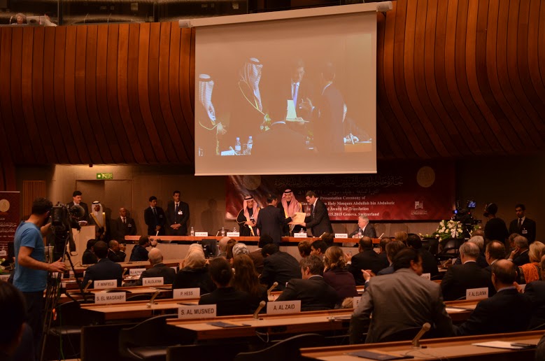 15 января 2015 г. (1436 г. по Хиджре) в Женеве состоялась седьмая церемония награждения Международной премией за достижения в области перевода Хранителя двух святынь короля Абдаллы ибн Абдель-Азиза аль Сауда, которая вручалась в седьмой раз. В этом году впервые среди лауреатов были как переводчики научной и художественной литературы, работающие с арабским языком, так и ученые, способствующие развитию теории и практики перевода. Премия вручалась Его Королевским Высочеством принцем Абдель-Азизом ибн Абдаллой ибн Абдель-Азизом, заместителем министра иностранных дел и председателем совета управляющих библиотеки им. Короля Абдель-Азиза и её попечительского совета в присутствии почетных гостей, среди которых Генеральный секретарь по образованию, науке и инновациям Швейцарской конфедерации г-н Мауро Дель Амброджио, представители дипломатической, научной и образовательной элиты разных стран мира.
