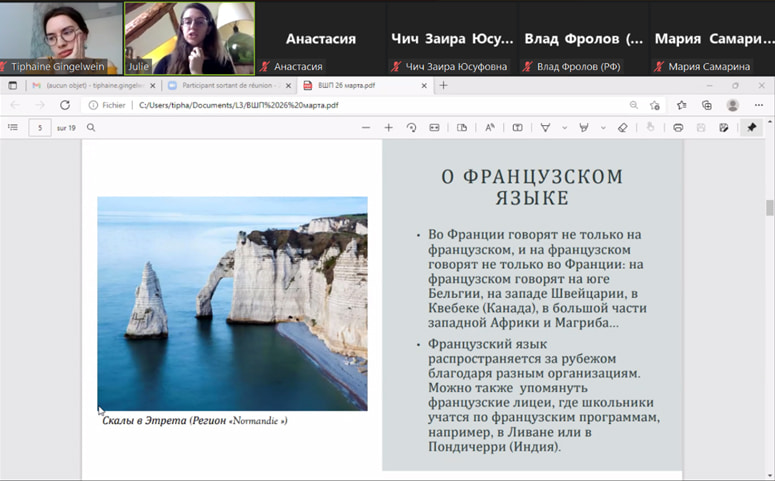 Жюли и Тифен напомнили, что французский язык — это язык дипломатии, поэтому люди часто выбирают работу в дипломатической сфере; связывают свою жизнь с международными отношениями. Что касается популярных во Франции языков, это зависит от региона. Например, в восточной части Франции, которая граничит с Германией, изучают немецкий язык, а в южной части — испанский. Русский язык также достаточно популярен, его можно изучать в школе в качестве второго или третьего иностранного языка.