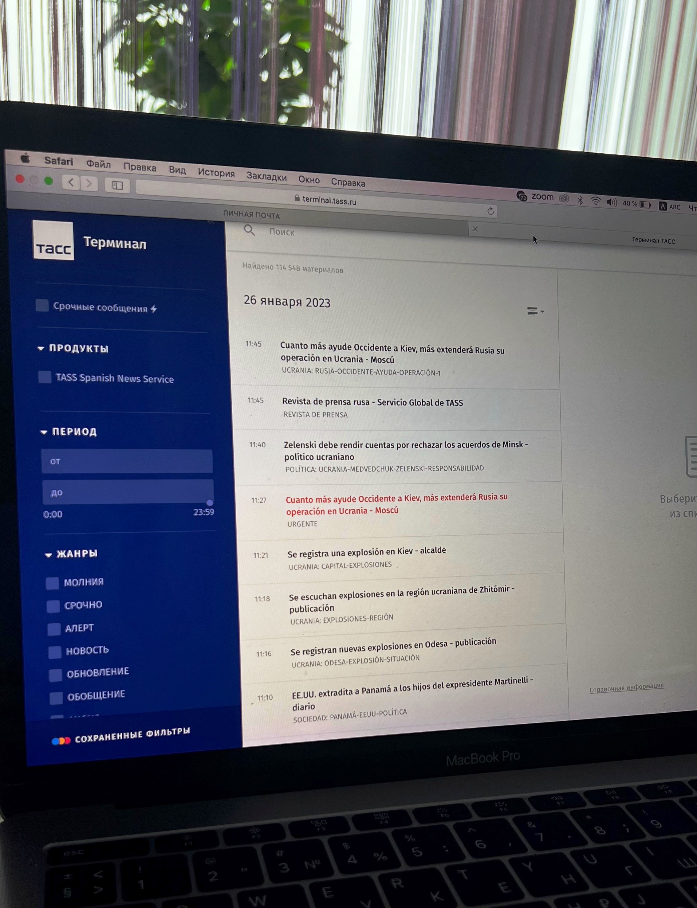 Мне посчастливилось пройти практику сразу в двух языковых отделах переводческой редакции – испанском и английском. Основная работа заключалась в переводе новостной ленты для иностранных подписчиков агентства. Сотрудники редакции большую часть времени работают удаленно, что позволило мне совмещать сессию и практику. По вторникам проходят общие брифинги, на которых мне удалось поближе познакомиться с командой. В нее входят не только переводчики, но и стилисты (в основном носители языка), которые вносят финальные правки в материалы. Интересно, что новости идут сплошным потоком, так что на перерыв сотрудники ходят по очереди, чтобы вести новостную ленту без остановок.