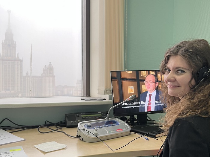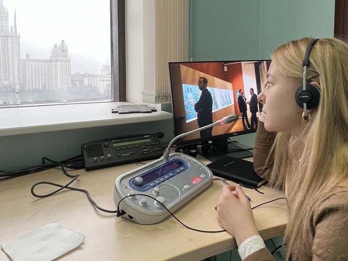 Задача синхронных переводчиков на представительном международном мероприятии – обеспечить непрерывный и равный диалог участников коммуникации. С этой ответственной и одновременно увлекательной миссией справились преподаватели и аспиранты Высшей школы перевода – Боташева Е.Б., Джахангири А.Х., Селезнёва А.И., Шебаршина Д.Ю.