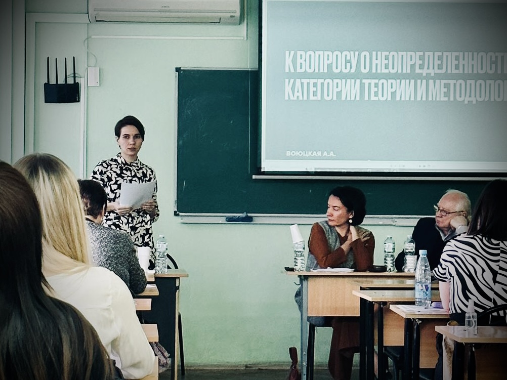 В докладе кандидата филологических наук преподавателя Воюцкой Александры Анатольевны был подведен итог исследовательской работы по рассмотрению природы неопределенности как основной категории теории и методологии перевода. А.А. Воюцкая сформулировала методические рекомендации преподавателям перевода для обучения студентов стратегиям преодоления и редуцирования неопределенности, а также описала возможные направления дальнейших исследований, фокусирующихся на личности переводчика, действующего в условиях неопределенности.