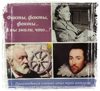На картинке №1 представлены 3 писателя, произведения которых чаще всего переводили на иностранные языки. Первый писатель – это Агата Кристи (1890 -- 1976), самый известный в мире автор детективной прозы. Второй – это Жюль Верн (1828 -- 1905) французский писатель, один из основоположников жанра научной фантастики. Третий, мне кажется, что все его знают – это Уильям Шекспир, английский поэт и драматург, зачастую считается величайшим англоязычным писателем и одним из лучших драматургов мира. На картинке №2 показана книга, которая является самой переводимой в мировой истории. Она переведена на более чем 2000 языков. Ее название, конечно, «Библия». Она является самой продаваемой книгой всех времён!.