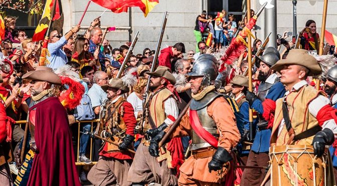 На официальном уровне Día de la Hispanidad празднуют в Мадриде, где его отмечают неизменным военным парадом, за которым с гостевых трибун, устанавливаемых на площади Колумба, наблюдают члены королевского дома и правительства, а также высокопоставленные руководители других испаноязычных стран. Парад проходит по центральному бульвару Кастельяна.