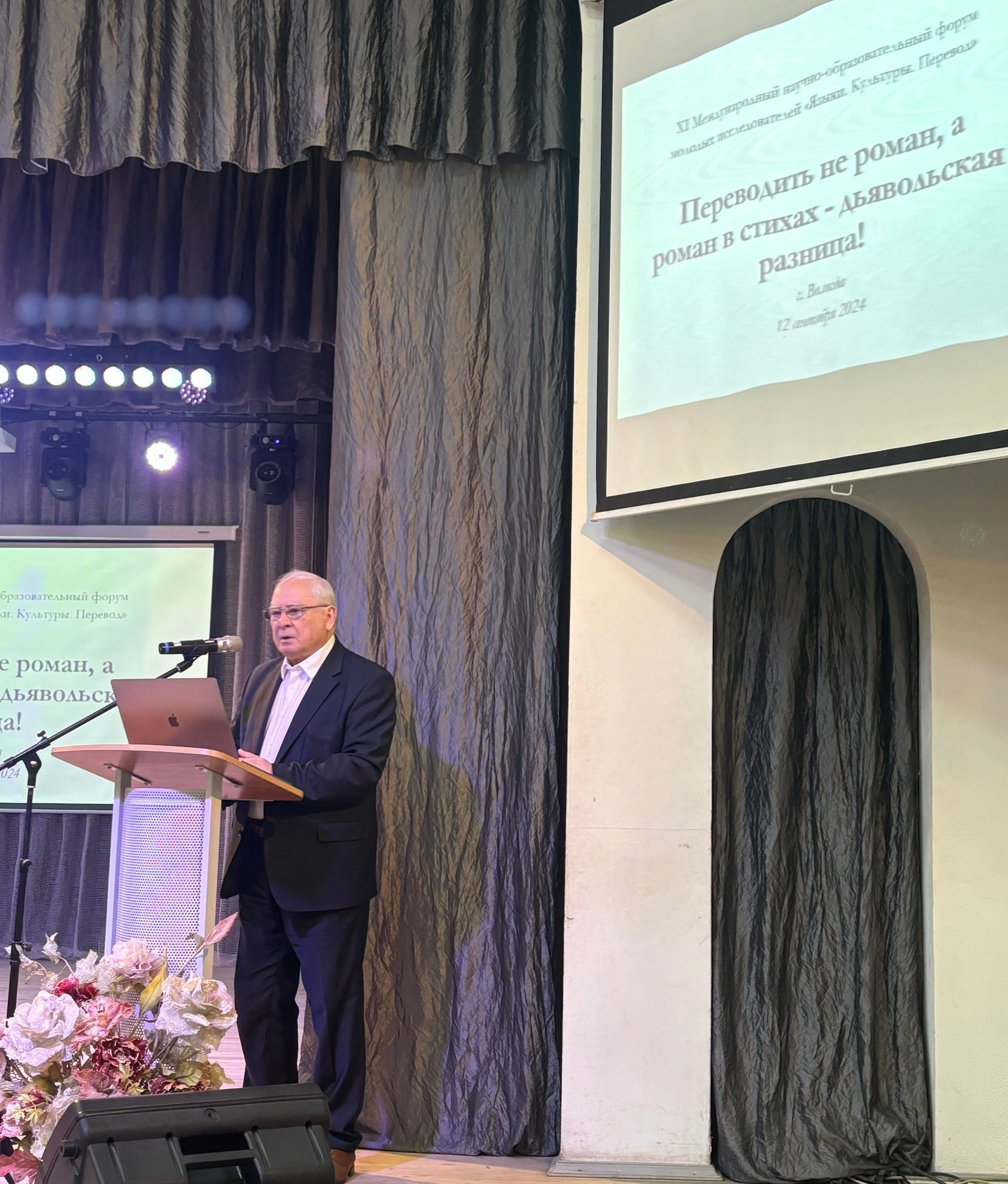 Форум открылся актовой лекцией академика РАО директора Высшей школы перевода Московского университета Н.К. Гарбовского «Переводить не роман, а роман в стихах – дьявольская разница!», чьё выступление вызвало живой интерес и активные обсуждения.