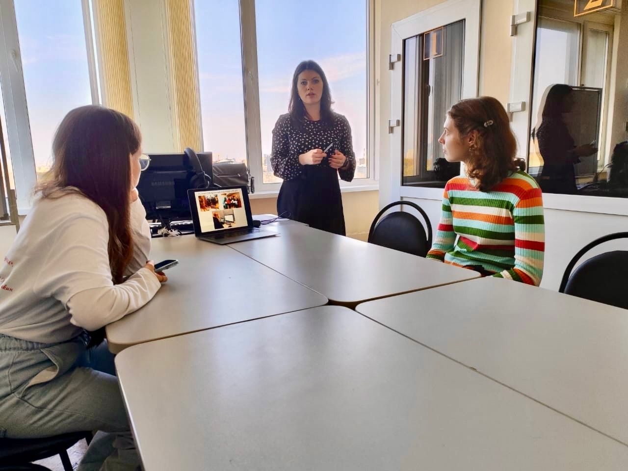 Преподаватель А.И. Селезнева рассказала о переводческих компетенциях, необходимых для успешной работы устным переводчиком, на мастер-классе «Формирование личностной компетенции устного переводчика». Участники мастер-класса не только узнали об упражнениях, которые помогают в формировании необходимых для работы навыков и умений, но и смогли попробовать себя в роли устных переводчиков и осуществить двусторонний перевод интервью.