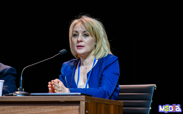 Завершилось пленарное заседание презентацией научных и учебно-методических разработок Высшей школы перевода Московского университета: О.И. Костикова рассказала о результатах публикационной деятельности факультета по приоритетным направлениям научных исследований, представила научный журнал «Вестник Московского университета. Серия 22. Теория перевода». Заместитель директора по дополнительному образованию и заведующая секцией русского языка кафедры теории и методологии перевода факультета доцент М.Н. Есакова сделала обзор учебников и учебных пособий по русскому языку и русской культуре для подготовки переводчиков, разработанных коллективом преподавателей Высшей школы перевода.