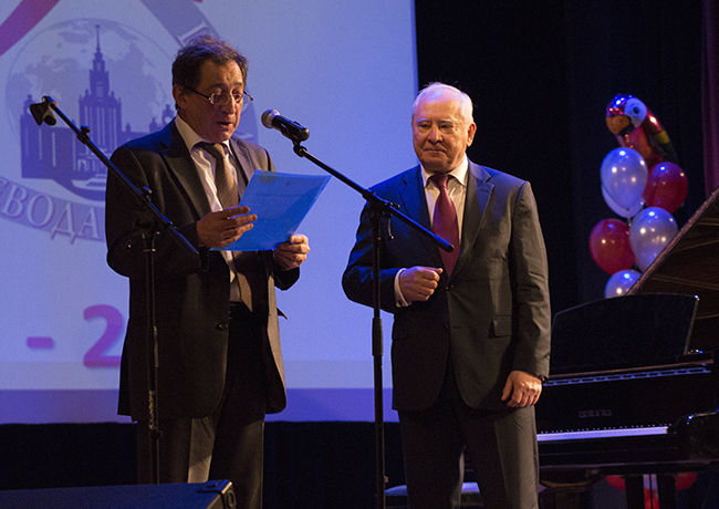 Далее торжества по случаю юбилея продолжились в Доме культуры МГУ, куда были приглашены преподаватели, аспиранты, студенты, выпускники, друзья и партнеры факультета. Мероприятие открыл директор Высшей школы перевода профессор Н. К. Гарбовский, а затем слово было предоставлено гостям.