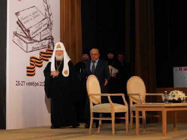 В торжественном открыли приняли участие: председатель Общества русской словесности, Святейший Патриарх Кирилл, заместитель председателя Общества, ректор Московского университета В.А. Садовничий, и Министр просвещения России С.С. Кравцов. Их выступления определили смысловые и ценностные ориентиры дальнейших обсуждений.