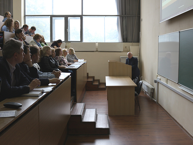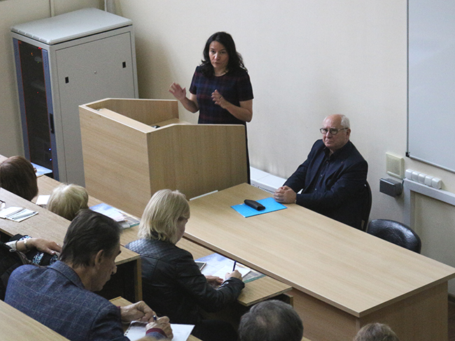 Заместитель директора по научной работе доцент О. И. Костикова довела до сведения преподавателей информацию о конкурсе работ, способствующих решению задач Программы развития Московского университета.