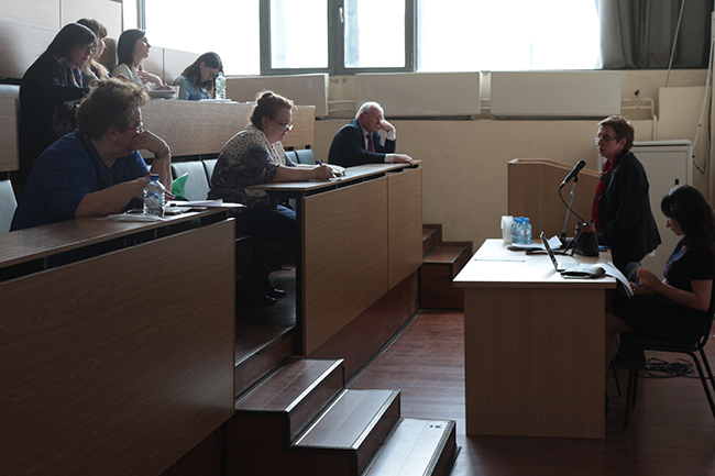 История перевода русских философских текстов – тема, поднятая в выступлении профессора Голубевой-Монаткиной Наталии Ивановны. В докладе «Об особенностях перевода русских философских текстов» отмечалась специфика философского дискурса, как особого речевого жанра, располагающегося между научной и художественной прозой. Этим объясняется особый подход переводчиков к межъязыковой обработке текстов такого рода.