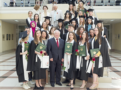 27 июня в Высшей школе перевода Московского университета состоялось вручение дипломов выпускникам факультета. В этом году Высшую школу перевода окончили 283 человека: 21 специалист, 86 бакалавров и 176 магистров.