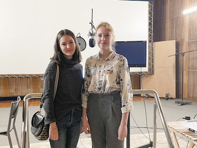 Студентка 5 курса Диана Киямова и выпускница 2021 года София Распопова поделились впечатлениями о работе студии «Мосфильм-мастер», где ранее они проходили переводческую практику.