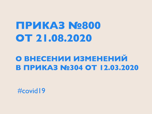 Приказ №800 от 21 августа 2020 года